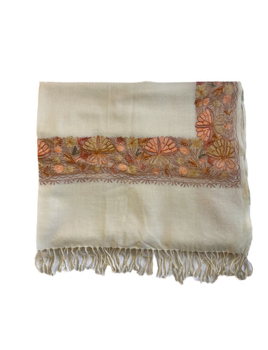 Darshan Chair Wool Meditation Shawl - Cream with Floral Embroidered Border
