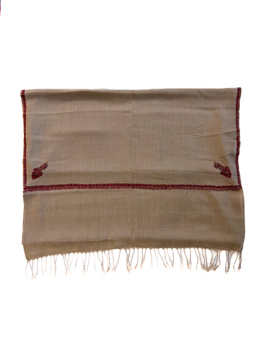 Foot Pillow Wool Meditation Shawl - Tan with Embroidered Border